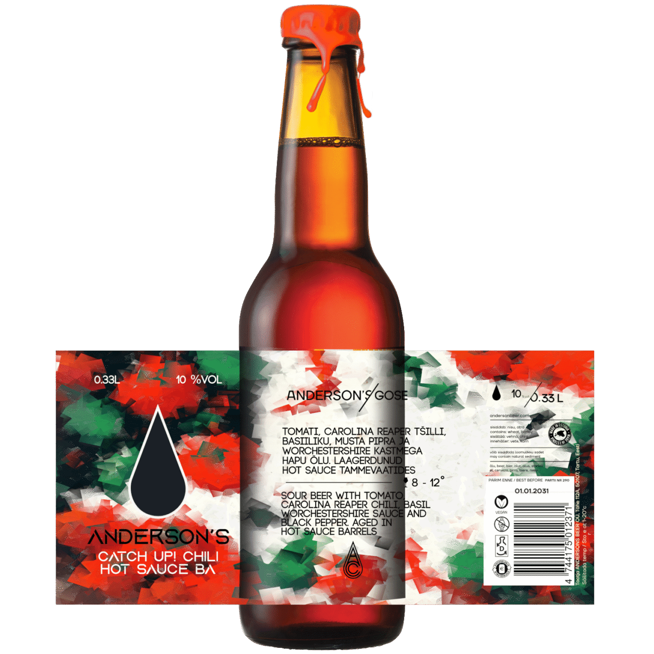 Catch Up! Chili on ainulaadne ja maitsekas gose-tüüpi õlu, mis ühendab värskete tomatite, basiiliku ja Carolina Reaper tšilli. / Catch Up! is a unique and flavorful gose beer that blends the taste of fresh tomatoes, basil, and Carolina Reaper chili into a delicious brew with a modest 4.1%